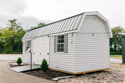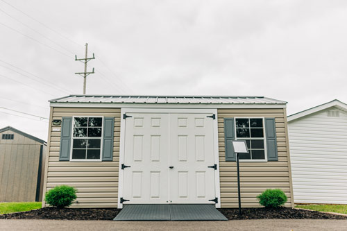 The durable, low-maintenance lap siding comes in a variety of colors to create the perfect look for your shed. It won’t warp, crack or rot under extreme weather settings compared with wood siding. It also helps with the weatherproofing of a shed.